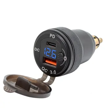 • 12V 24V on Off Switch Fast Charging 18W USB 3.0 Port Type C 30W PD QC3.0 Voltmeter Display Car Charger